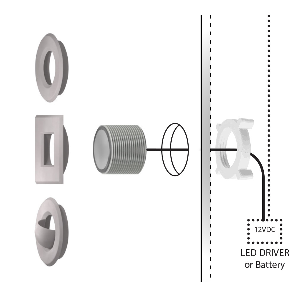 ALEDECO Global's LED Bolt provides an alternate solution for installing RD12's into thin materials and vibrating environments, like boats, RVs, cars, and railings. Just twist the backing nut to the back of the bolt LED light so that it locks the light in place.