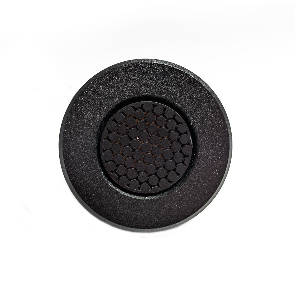 Newest 40mm PC trim in our RD12 series shades light from your eyes with its honeycomb design. The set includes round trim and honeycomb piece. Available in five different finishes.