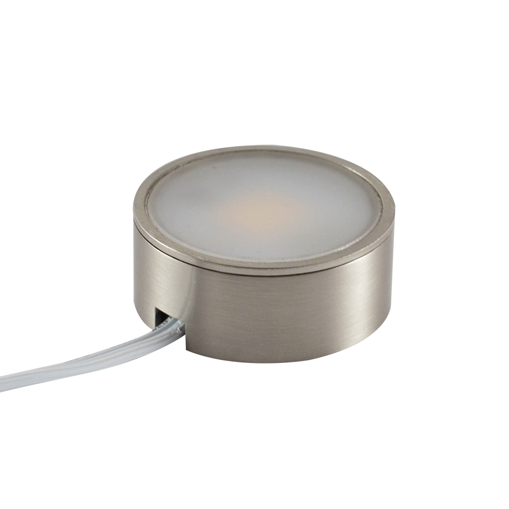 ALEDECO Global's RD7 LED Cabinet Light includes a surface mount bezel and recessive 1.75" LED light engine housing 12 Super bright SMD LEDs, or 30 LEDs. Available in a frosted or clear lens. Thin profile, low heat, and long lifespan allow this LED cabinet light to directly replace existing high heat halogen under cabinet lights. Snap-on trims available