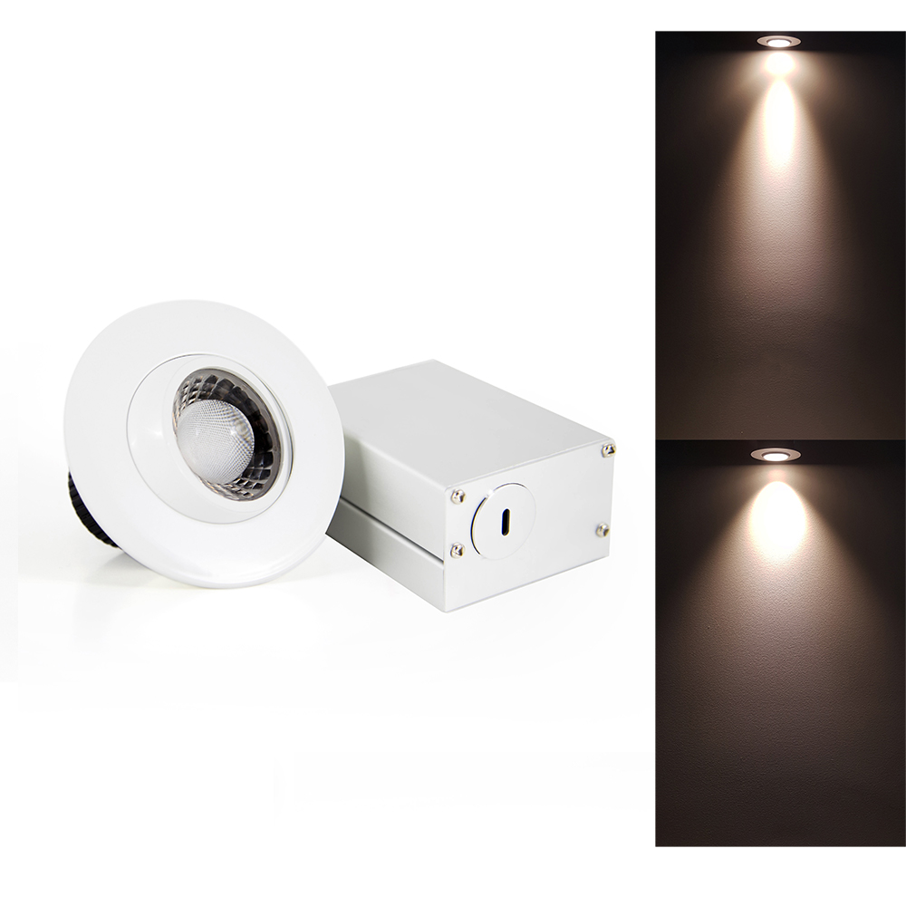 High voltage downlight features an adjustable beam degree and 360° gimbal rotation. This downlight is suitable for low clearance applications, soffit lighting, and architectural lighting. Includes a light engine and dimmable driver.
