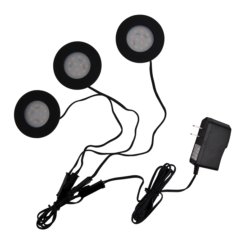 These lights can be recessed or surface mount installed. Can be with SMD LED or 5mm LED, with 3 Lights or 5 Lights in each set. Can be custom wire size and lengths or choose our standard LED wire harness options. cETLus Listed LED Puck Light Kit.